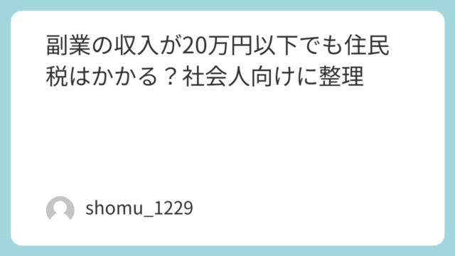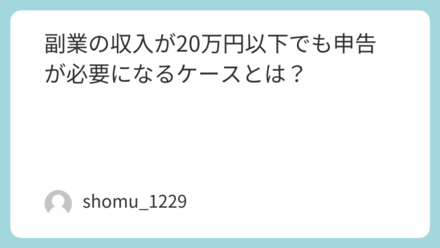 結論副業の「20万円ルール」は、“何でも20万円以下なら税金がかからない”という意味ではありません。正しくは、会社員が本業とは別に得た「所得」が年間20万円以下なら、原則として“所得税の確定申告が不要”になる場合があるというルールです。しか...