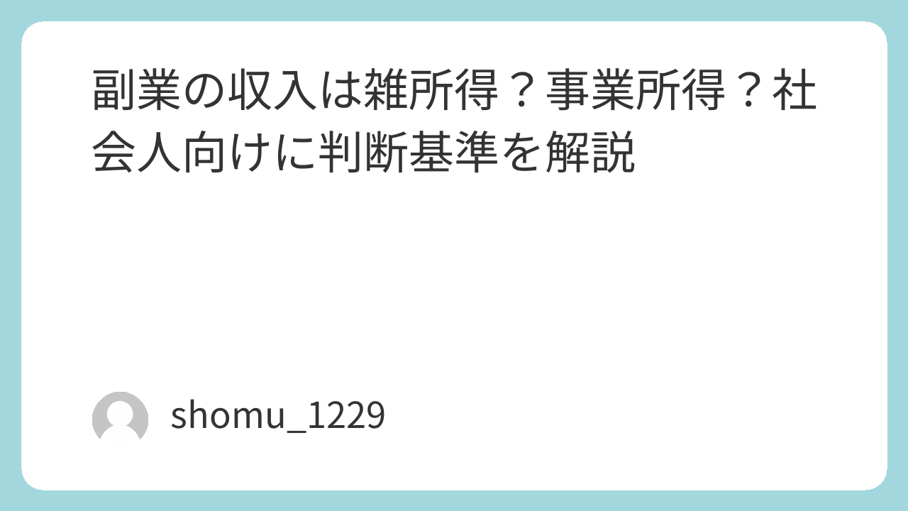 - 副業収入は 雑所得 or 事業所得 のどちらか