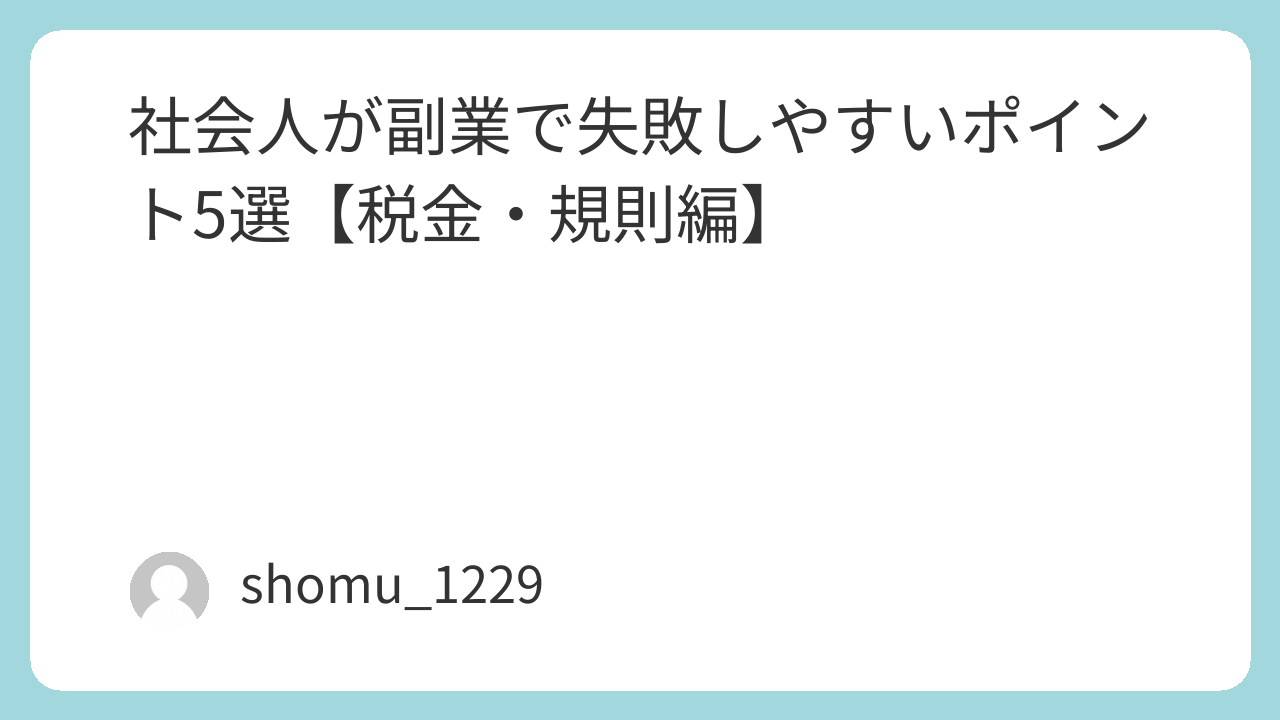 今回は、社会人が副業で特に失敗しやすい税金・規則まわりのポイントを5つに分けて解説します。